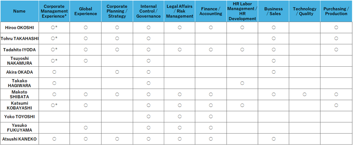 (Note) The asterisk (*) indicates that the person has an experience as President of the Company or its subsidiaries.