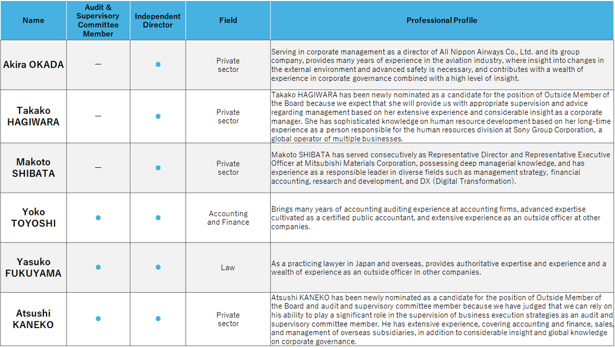 The Board of Directors is composed of diverse directors from different backgrounds in terms of their expertise and experience, with due consideration given to gender, internationality, etc. As a result, the Board of Directors engages in constructive and lively discussions from a variety of perspectives, including perspectives from outside the Company.